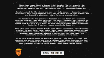 - Make Space Great Again: Save Earth, protect Donald’s power, and become the hero the galaxy deserves.